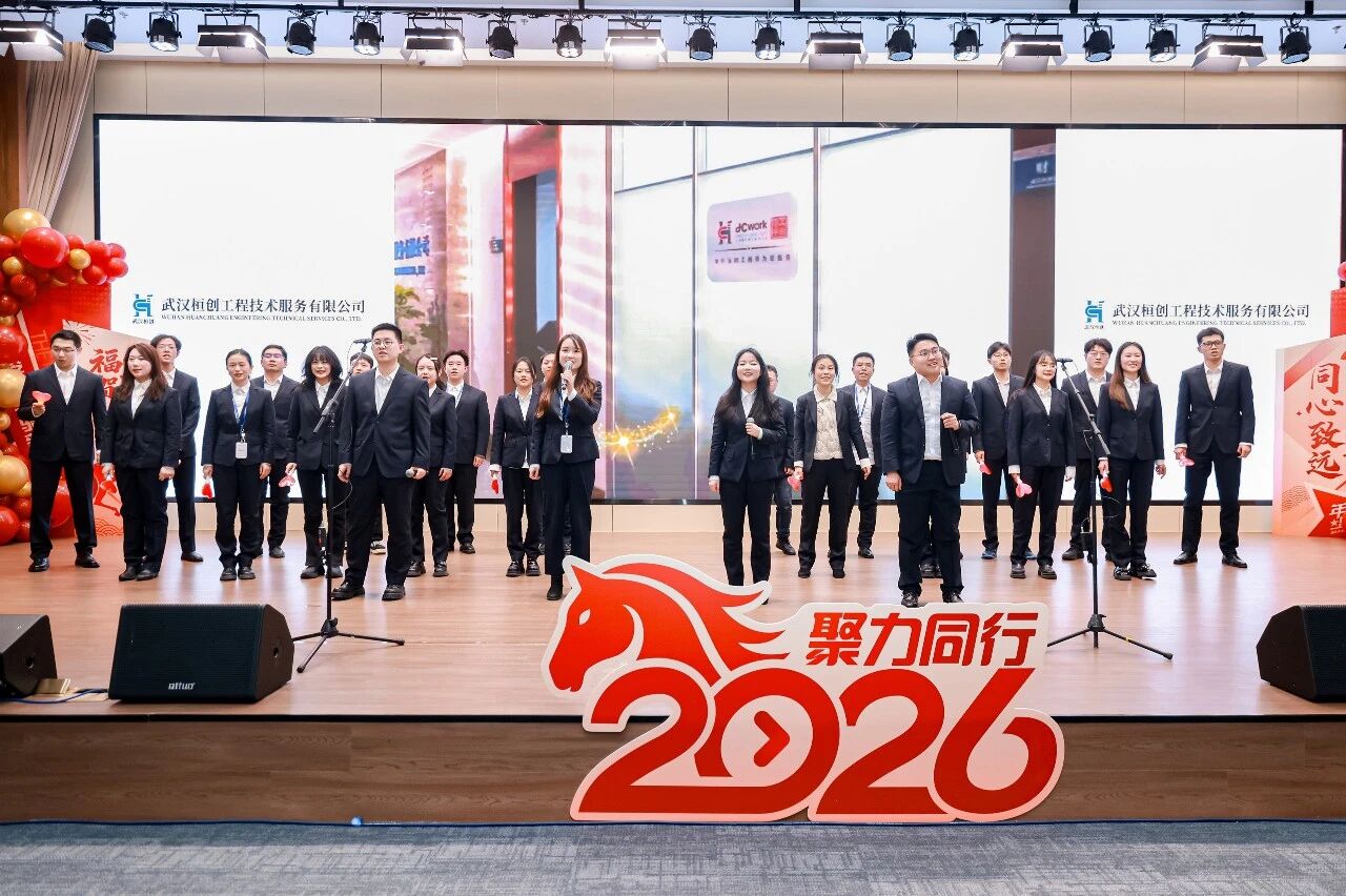 2026年1月29日,武汉桓创工程技术服务有限公司“2025年度先进表彰大会暨趣味文化年会”在五环研发院一楼报告厅隆重举行。大会在激昂温暖的四周年主题MV《桓创少年》中拉开帷幕,桓创公司全体员工齐聚一堂,共同回顾奋斗历程,表彰先进典型,在充满仪式感与趣味性的文化活动中,擘画新一年发展蓝图。